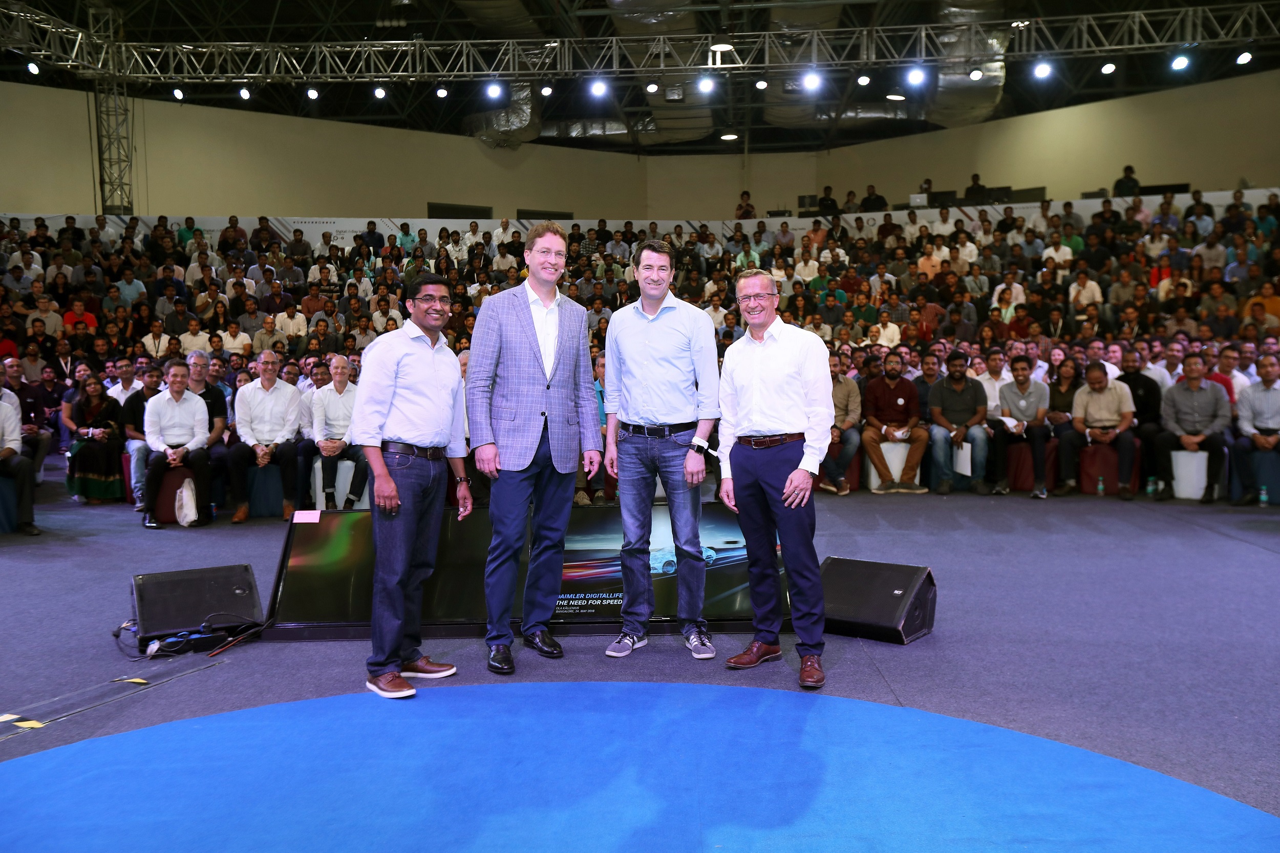 Manu Saale, Managing Director & CEO at Mercedes-Benz Research and Development India, Ola Källenius, Member of the Board of Management of Daimler AG and responsible for Group Research & Mercedes-Benz Cars Development, Markus Haegele, Head Digital Life, Daimler and Thomas W. Hellmuth, Chairman of the Board Mercedes-Benz RD India at DigitalLifeDay in Bangalore, India